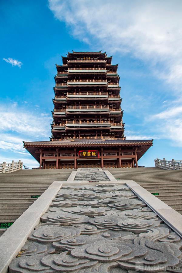 作为海岱楼的核心标识,这三个字用行楷书。笔画挺拔有力,又不失温润,和海岱楼钟书阁的建筑风格很搭,远远望去,匾额上的金字让这座地标更有文化味。