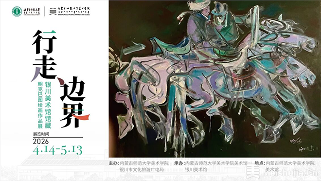 2026年4月14日,由内蒙古师范大学美术学院、银川市文化旅游广电局主办,内蒙古师范大学美术学院美术馆、银川美术馆承办的“行走边界——银川美术馆馆藏朝克巴图绘画作品展”在内蒙古师范大学美术学院美术馆正式开幕。