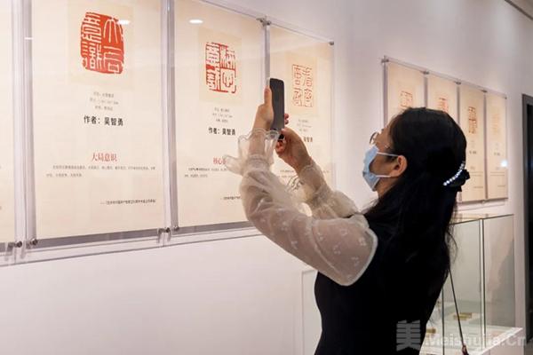 在本次展览中,东莞市文联邀请孙日新、孙立强、吴智勇、何锐智等12位篆刻家,从习近平总书记关于文艺工作的重要讲话及报告中精选经典词句作为篆刻内容,潜心创作出118方篆刻作品公开展出,不仅集中展现了东莞篆刻艺术的新发展,更让古老的篆刻艺术融入现代生活,彰显时代精神。