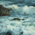 《海浪滔滔》布面油画 102x135cm 2006年 海之南,是一个有着充沛阳光与繁茂雨林的地方。充沛的阳光,蒸腾着海南的街市和乡村,一个个激情的日日夜夜。阳光使我们的记忆深处涌动着热烈与明亮,涌动着一种透着阳光气息的艺术。已故画家刘贵宾先生晚年寄寓海之南,以画笔发现海南的美。作为一位岛外画家,贵宾先生从海岛的阳光、植物、风土中吸收养分,内心世界与海南风物形成了呼应与映照。笔下的写生,带着热带的潮湿之气,